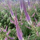 Getting height into a perennial border is essential to create the right balance, and if it's height you're after then Veronicastrum virginicum 'Fascination' is certainly one to consider. Whorls of deep green spear like leaves with a reddish tint give rise in summer to long dark red stems topped with spires of tiny pinky mauve flowers which wave and weave in the breeze and attract myriad pollinators. No wonder it is called 'Fascination', as the effect is quite mesmerising. A vigorous grower the plant can reach 1.4 metres or so in height and up to a metre spread when mature. Mature clumps can be split in early spring. The flowerheads can be used for cutting (the seedheads look amazing in winter if left on), and are also much prized by flower arrangers. Also known as Culver's Root, this plant is a beautiful addition to the herbaceous border. Quite tolerant of most soil conditions, fully hardy and low maintenance, so much to love indeed!