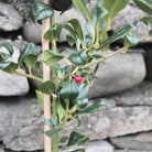 Ilex JC Van Tol is a superb evergreen female holly which has dark green, almost spineless leaves arrayed along purple stems amongst which it produces large crops of bright red berries in abundance in autumn and winter. It's a self fertile variety which doesn't require a pollination partner to berry, but will sometimes berry better if it is near another variety. Great for wildlife, and a rich source of food for birds, berrying hollies brighten the most dismal of winter days. Happy in any moist but well drained soil, and perfectly hardy, J C Van Tol can in time reach 6m x 4m, but is rather slow growing and easy to keep trimmed to shape and size. Holder of an RHS Award of Garden Merit.