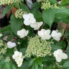 Unfussy, robust, deciduous shrub with deeply veined, yellow green leaves and huge, tapering, terminal cone shaped clusters of both fertile flowers and a few of the  more showy sterile flowers. Green buds open creamy white and stay white all summer.  Excellent for smaller gardens, even containers.  1 to 2.5 metres high by 1.5metres wide.