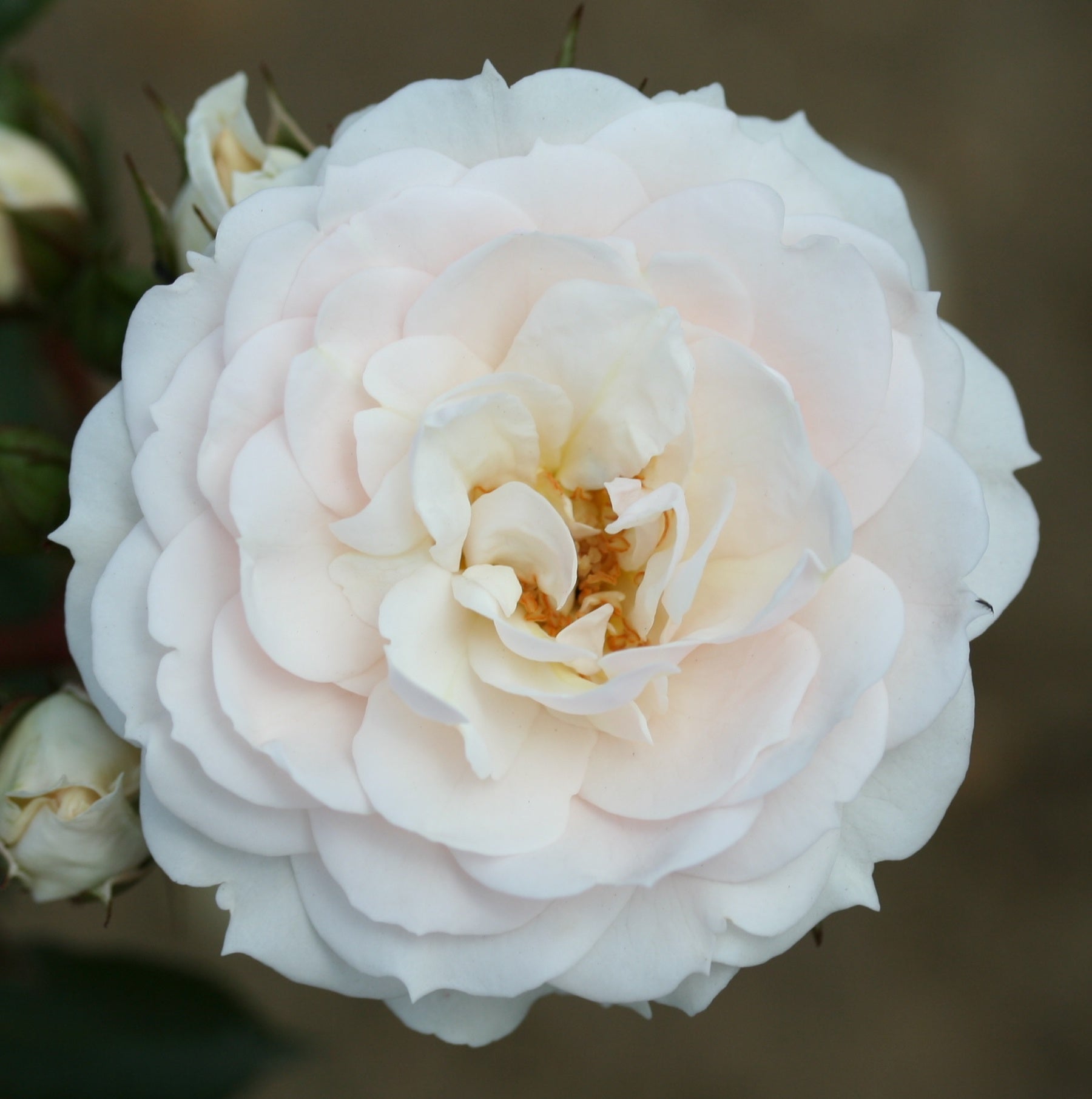 'Cheek to Cheek' is a compact, climbing, deciduous shrub with thorny stems bearing pinnate leaves with ovate, semi-glossy, dark green leaflets and lightly fragrant, double, creamy-white flowers from late spring into autumn.